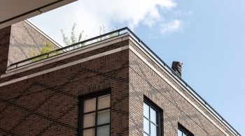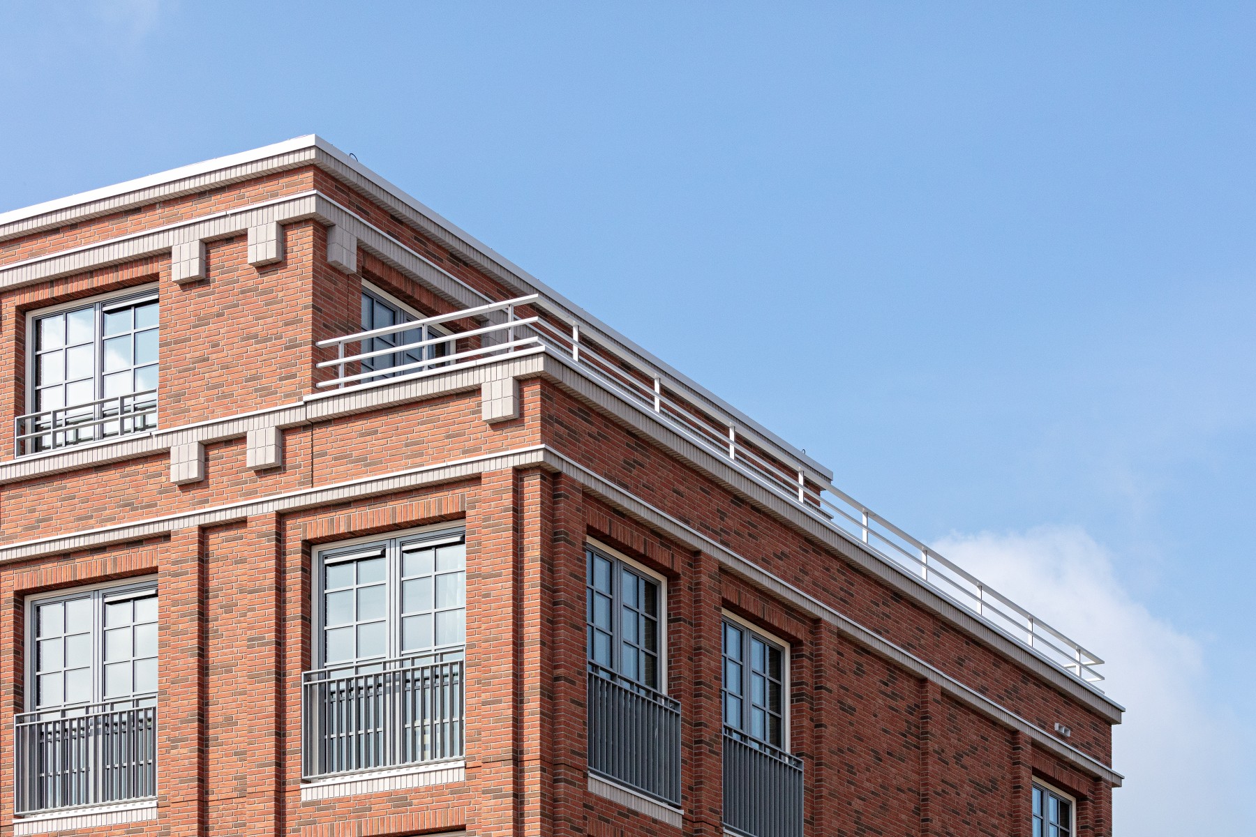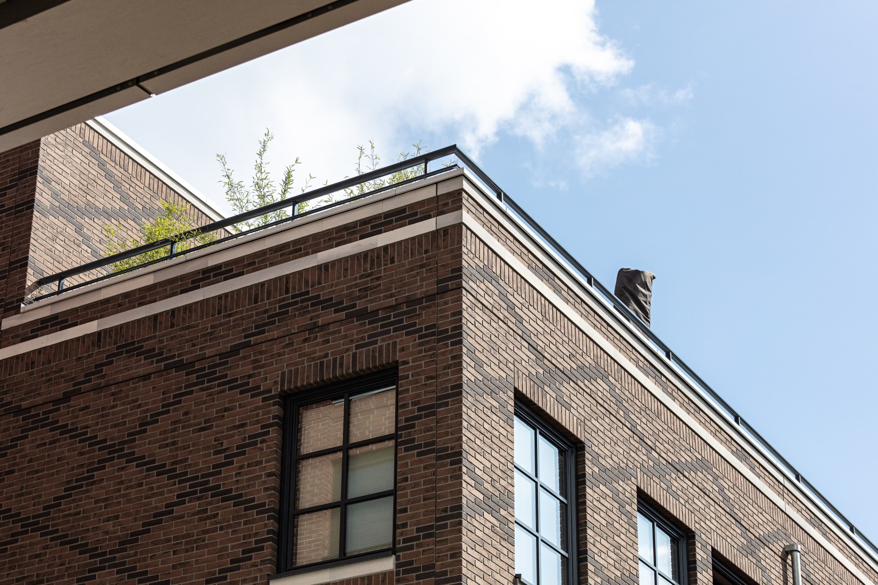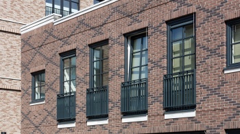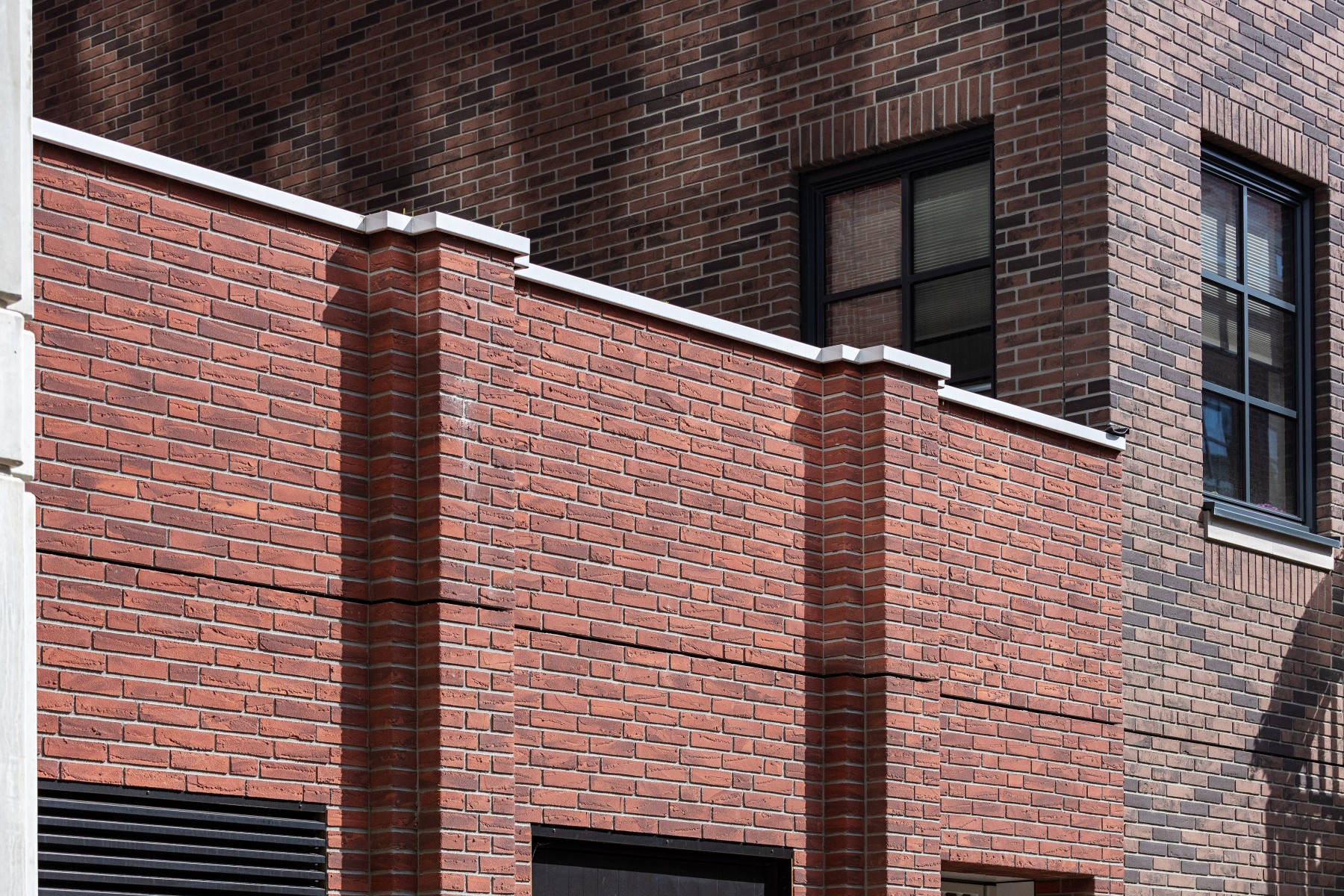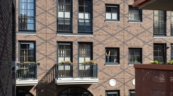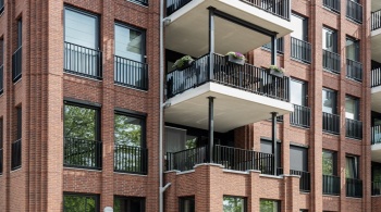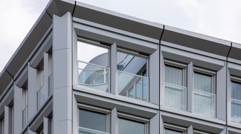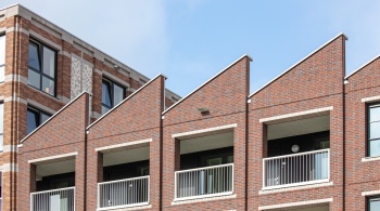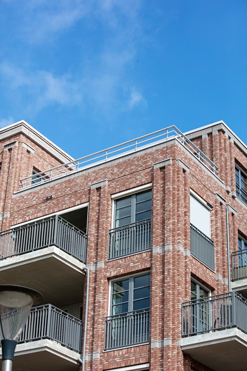 Für die Wasserschläge und Mauerabdeckkappen wählte Joost bewusst Aluminium wegen der Leichtigkeit, mit der das Material detailliert werden kann. Die Aluminium-Mauerabdeckkappen sind an einigen Stellen mit Balustern mit Geländer versehen, manchmal drei übereinander. „Aluminium-Mauerabdeckkappen sorgen für eine saubere Oberfläche an Rändern, an denen Bewohner nah herankommen, wie Balkone und Dachterrassen. Hier ist Aluminium nicht nur ästhetisch ansprechend, sondern auch praktisch durch seine Langlebigkeit und einfache Wartung. Darüber hinaus konnten wir hiermit dennoch ein Bild traditioneller Betonarchitektur auf leichte und innovative Weise umsetzen, passend zur Holzrahmen-Bauweise“, so Verbeek. Zusätzlich hat Aluminium geholfen, horizontale Nähte zwischen Fassadenpaneelen zu kaschieren. „Durch die geschickte Anwendung von Aluminium-Kantteilen verschwinden hier und da Nähte gezielt im Design.“