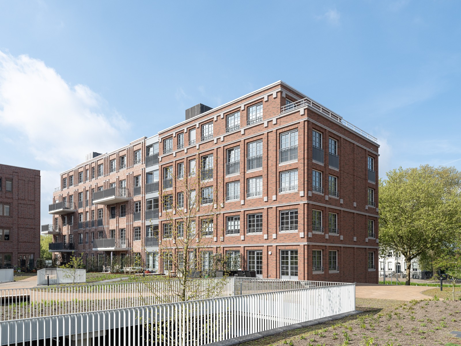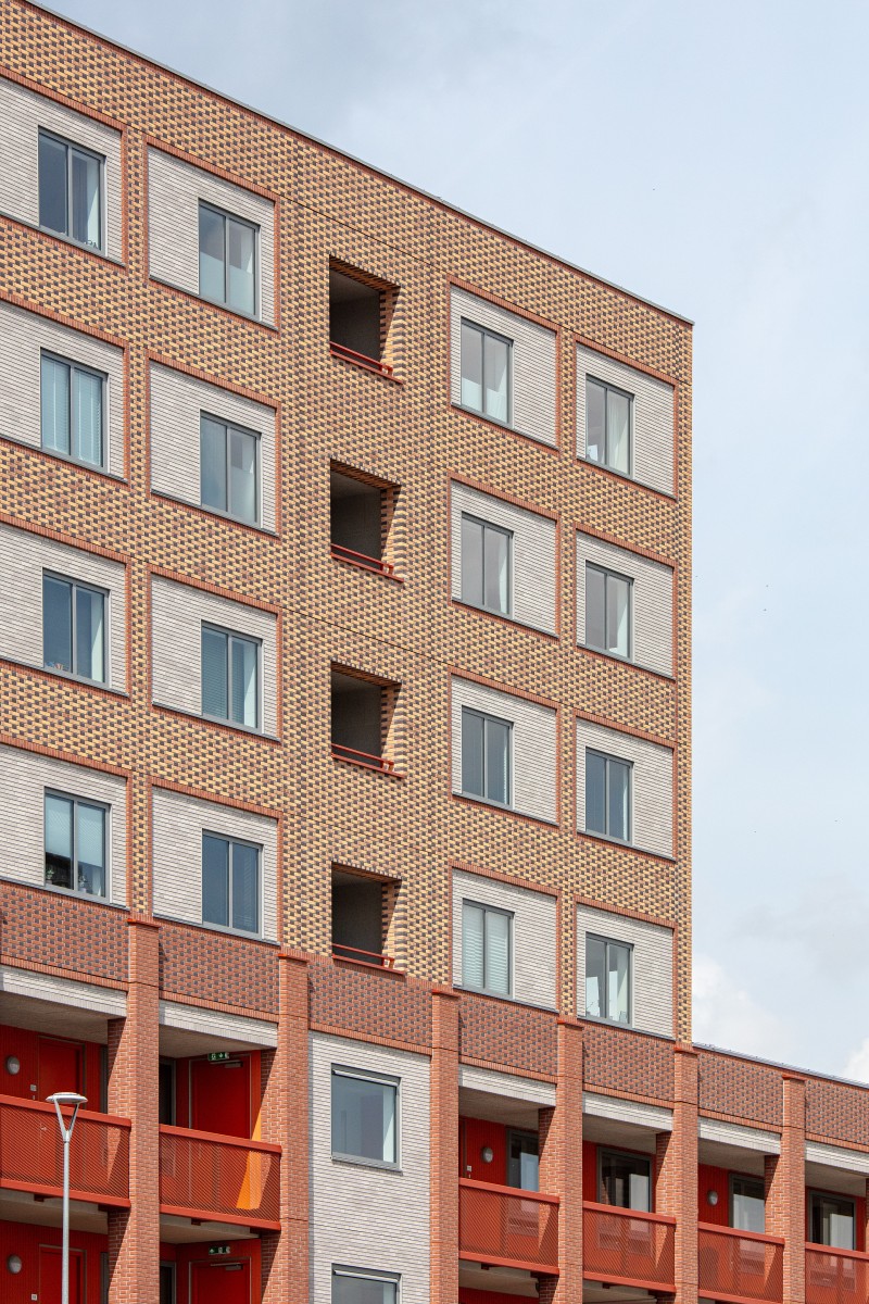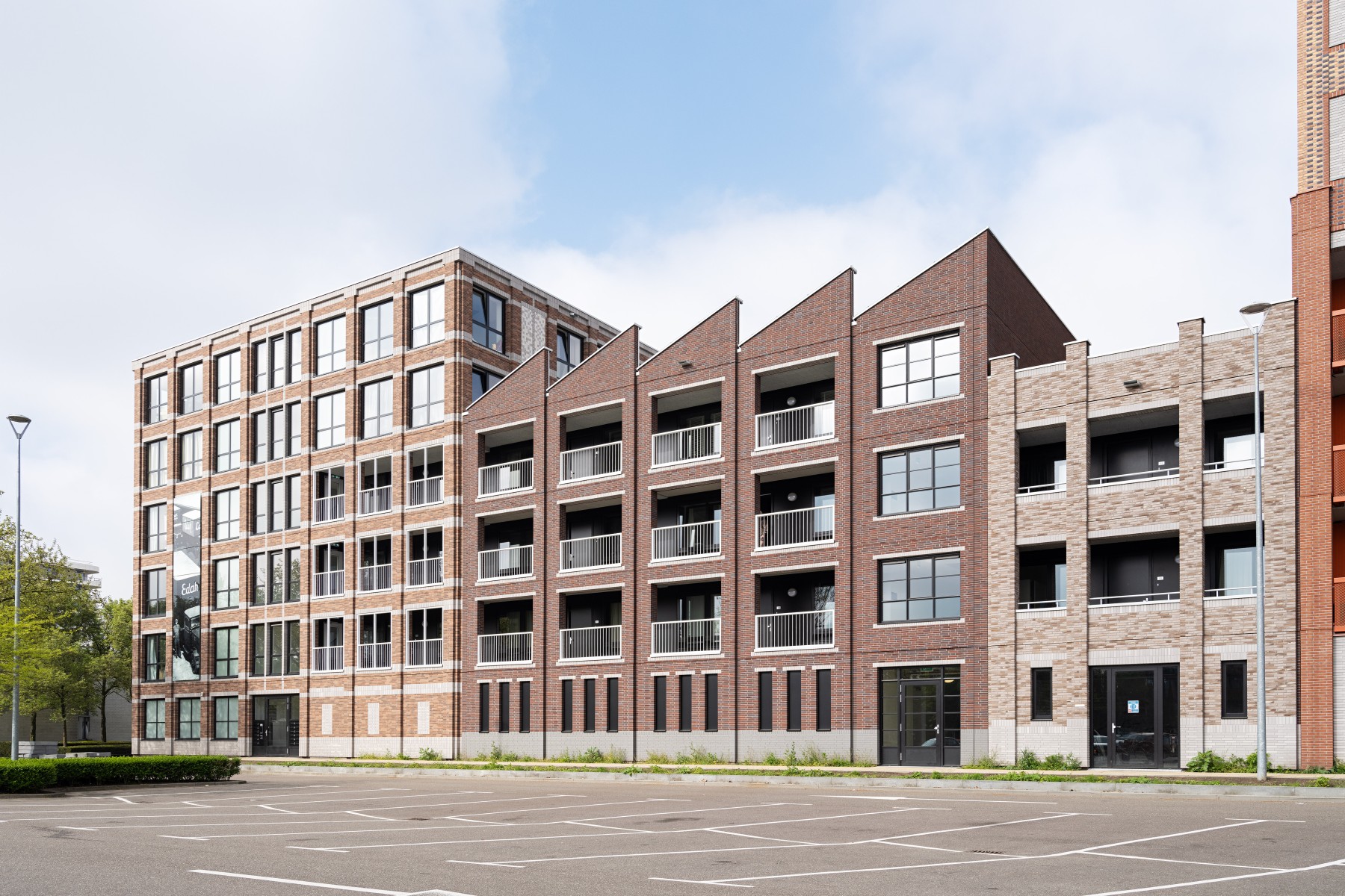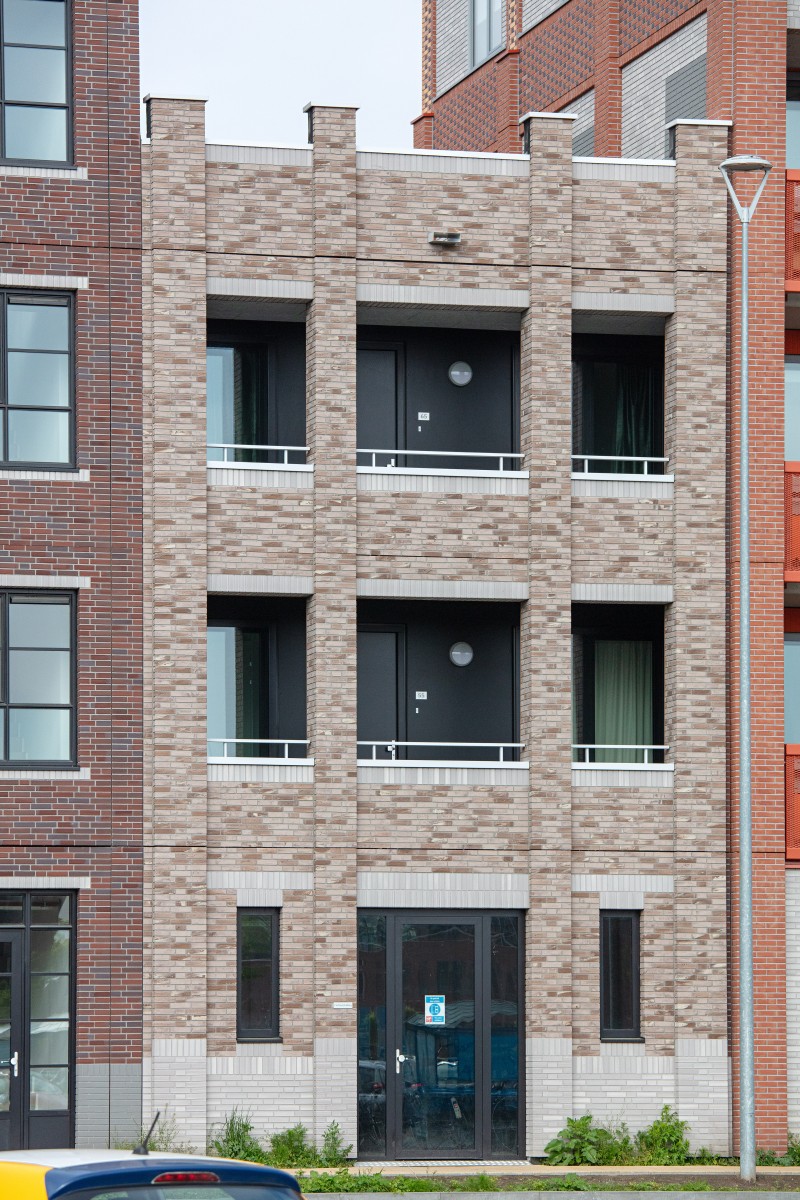 Der Wohnkomplex besteht aus dreizehn Wohnblöcken, die zusammen eine klare Einheit bilden, aber dennoch jeder einen eigenen Charakter besitzt. „Wir haben uns um Variation innerhalb der Kohärenz bemüht“, bemerkt Verbeek. „Die Breitenmaße der Wohngebäude am Kanal sind nahezu gleich und inspiriert von der Breite des monumentalen EDAH-Gebäudes. Das sorgt für Rhythmus und Wiedererkennbarkeit.“
