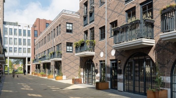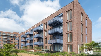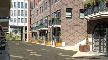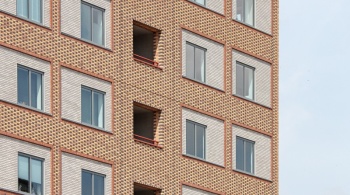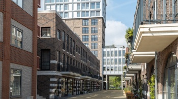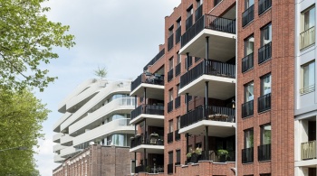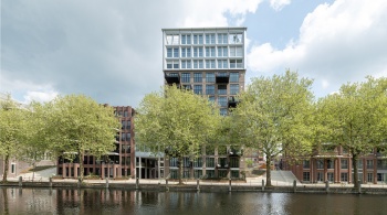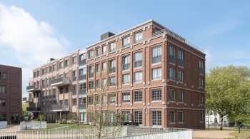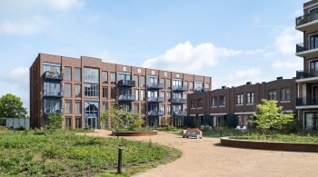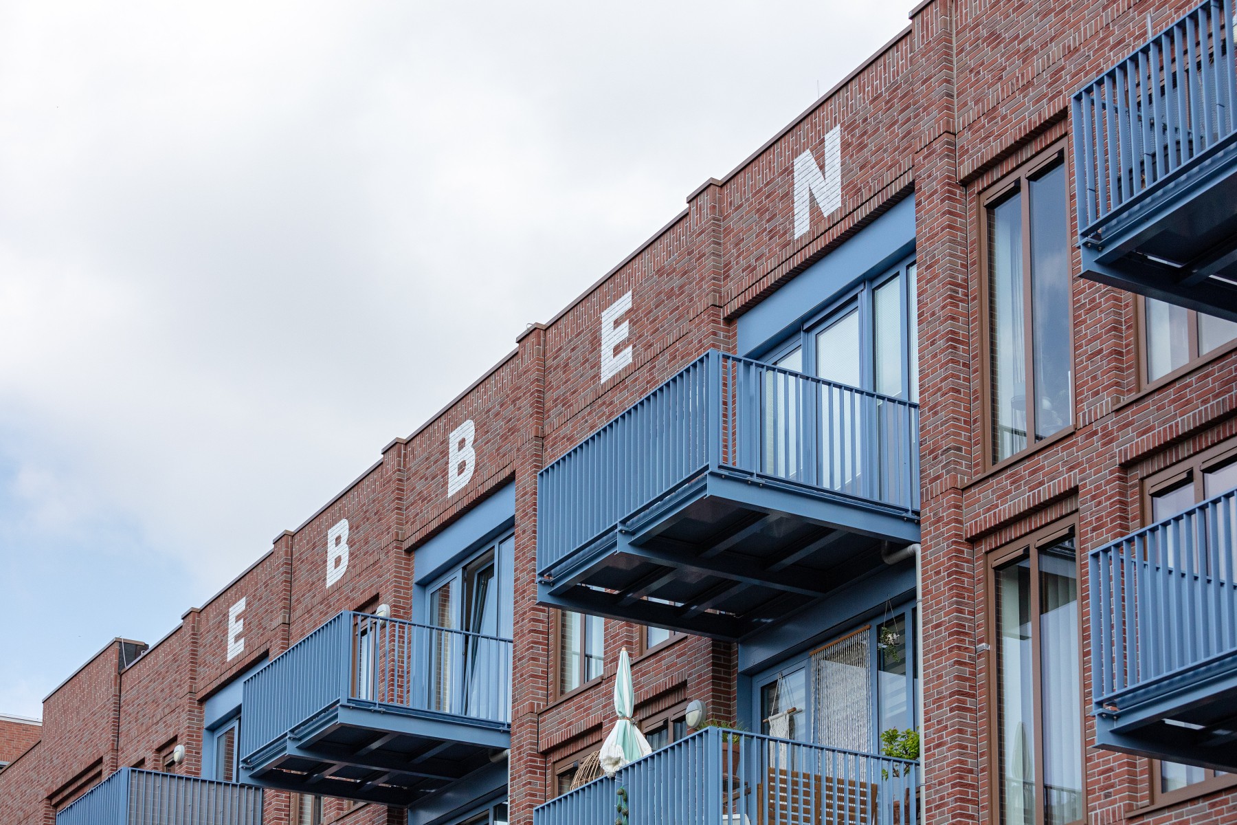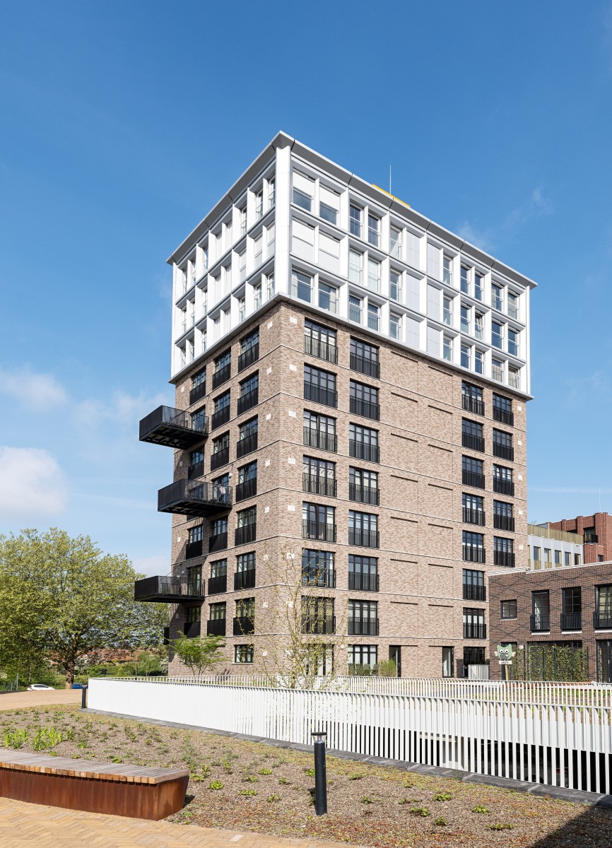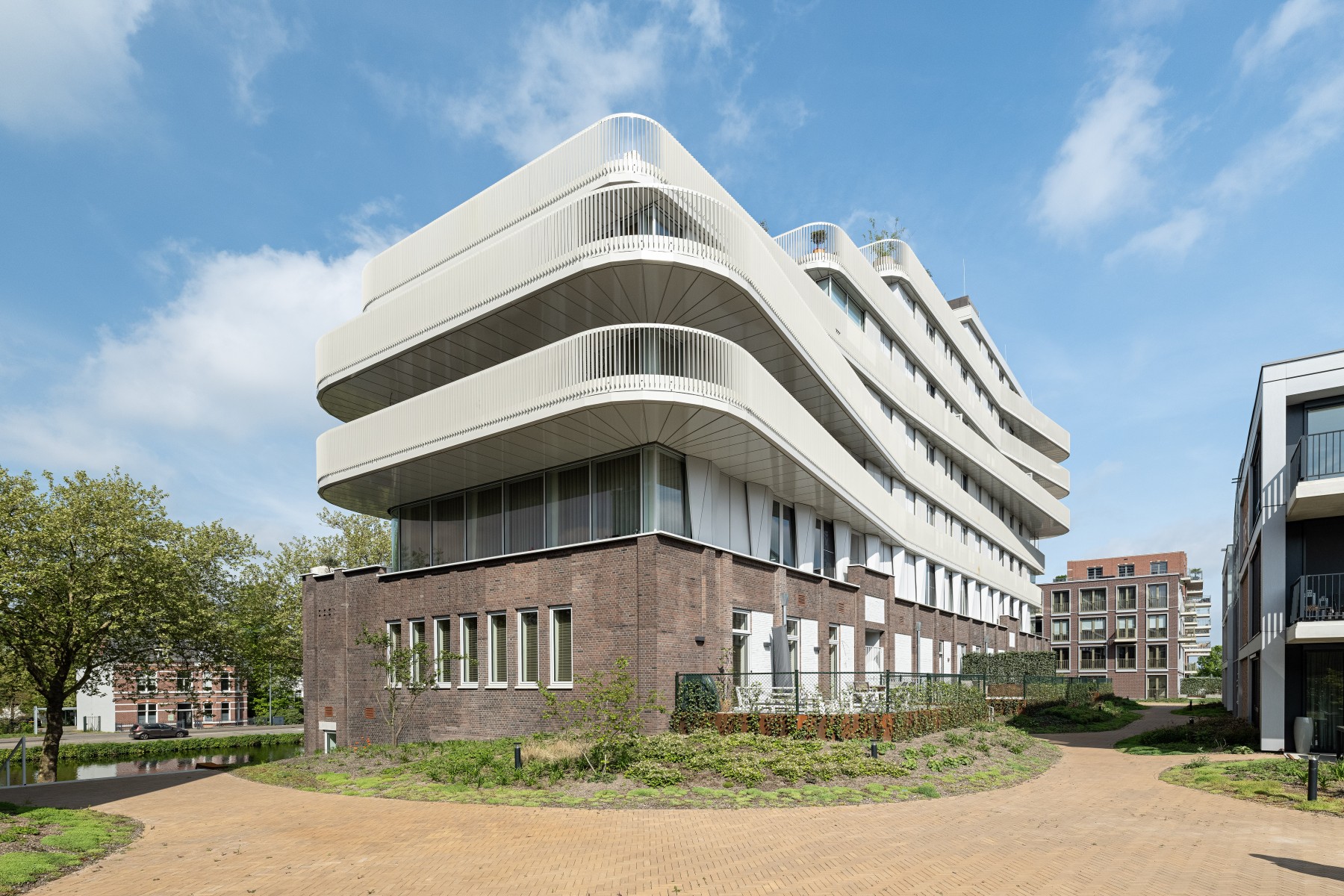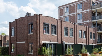 Der Wohnkomplex besteht aus dreizehn Wohnblöcken, die zusammen eine klare Einheit bilden, aber dennoch jeder einen eigenen Charakter besitzt. „Wir haben uns um Variation innerhalb der Kohärenz bemüht“, bemerkt Verbeek. „Die Breitenmaße der Wohngebäude am Kanal sind nahezu gleich und inspiriert von der Breite des monumentalen EDAH-Gebäudes. Das sorgt für Rhythmus und Wiedererkennbarkeit.“
