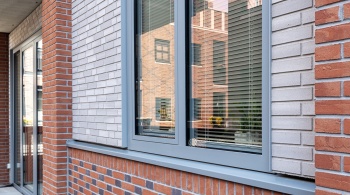 Aluminium ist bei diesem Ansatz von entscheidender Bedeutung, wegen seines geringen Gewichts und der Möglichkeit, dieses Material nahtlos mit Prefab-Bausystemen zu kombinieren. „Gerade wegen des geringen Gewichts von Aluminium konnten wir detaillierte Anwendungen realisieren, die perfekt zu Prefab-Paneelen passen“, erklärt Joost. Er nennt insbesondere Aluminium-Dachränder, Wasserschläge, Mauerabdeckkappen und Maßanfertigungen. „Wir haben uns auch für Aluminium-Fensterrahmen und -Türen entschieden, weil sie nachhaltig und sehr wartungsfreundlich sind.“