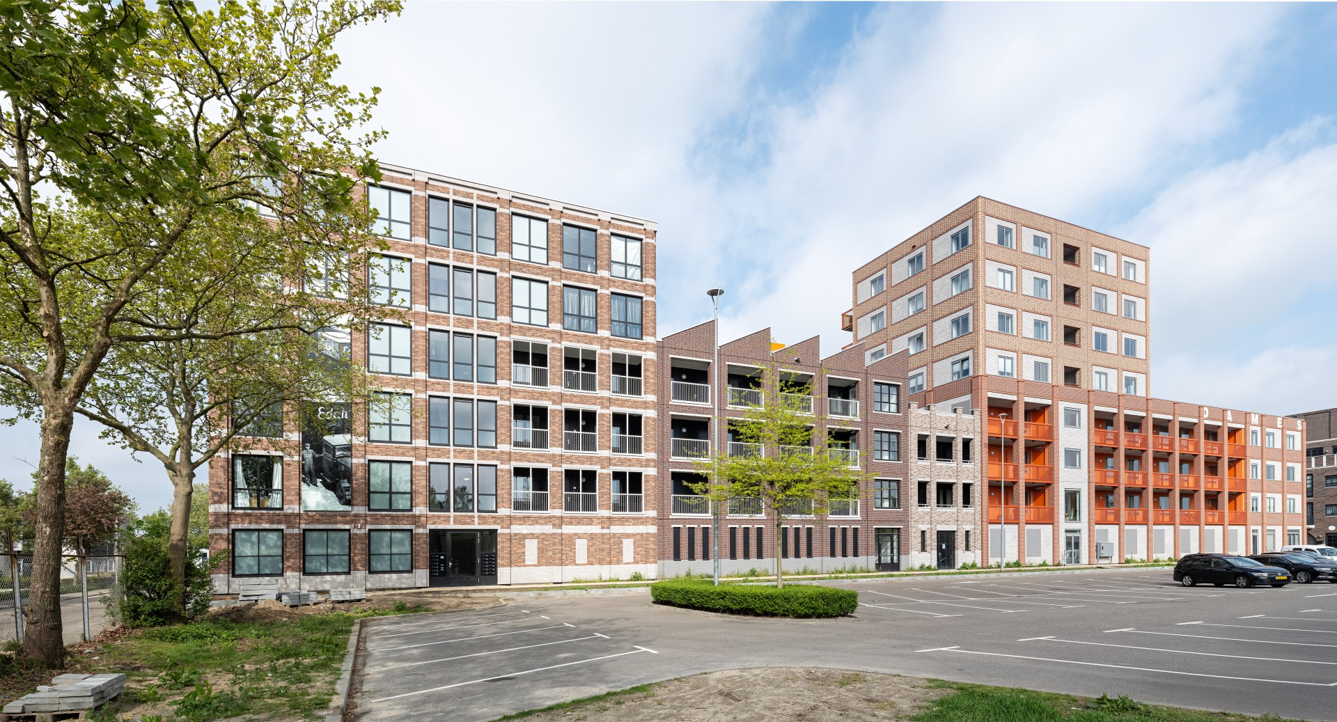 Oranjekade in Helmond ist ein innovatives Viertel, in dem Geschichte, moderne Prefab-Architektur und Nachhaltigkeit zusammenkommen. Die Aluminium-Mauerabdeckungen, Wasserschläge, Dachränder, Türen und Fenster passen perfekt zu den Prefab-Holzrahmen-Fassadenelementen. In diesem Projekt werden Alt und Neu verbunden, wobei das charakteristische EDAH-Gebäude erhalten bleibt und Raum für Begegnungen in den geteilten Innenhöfen geschaffen wird.