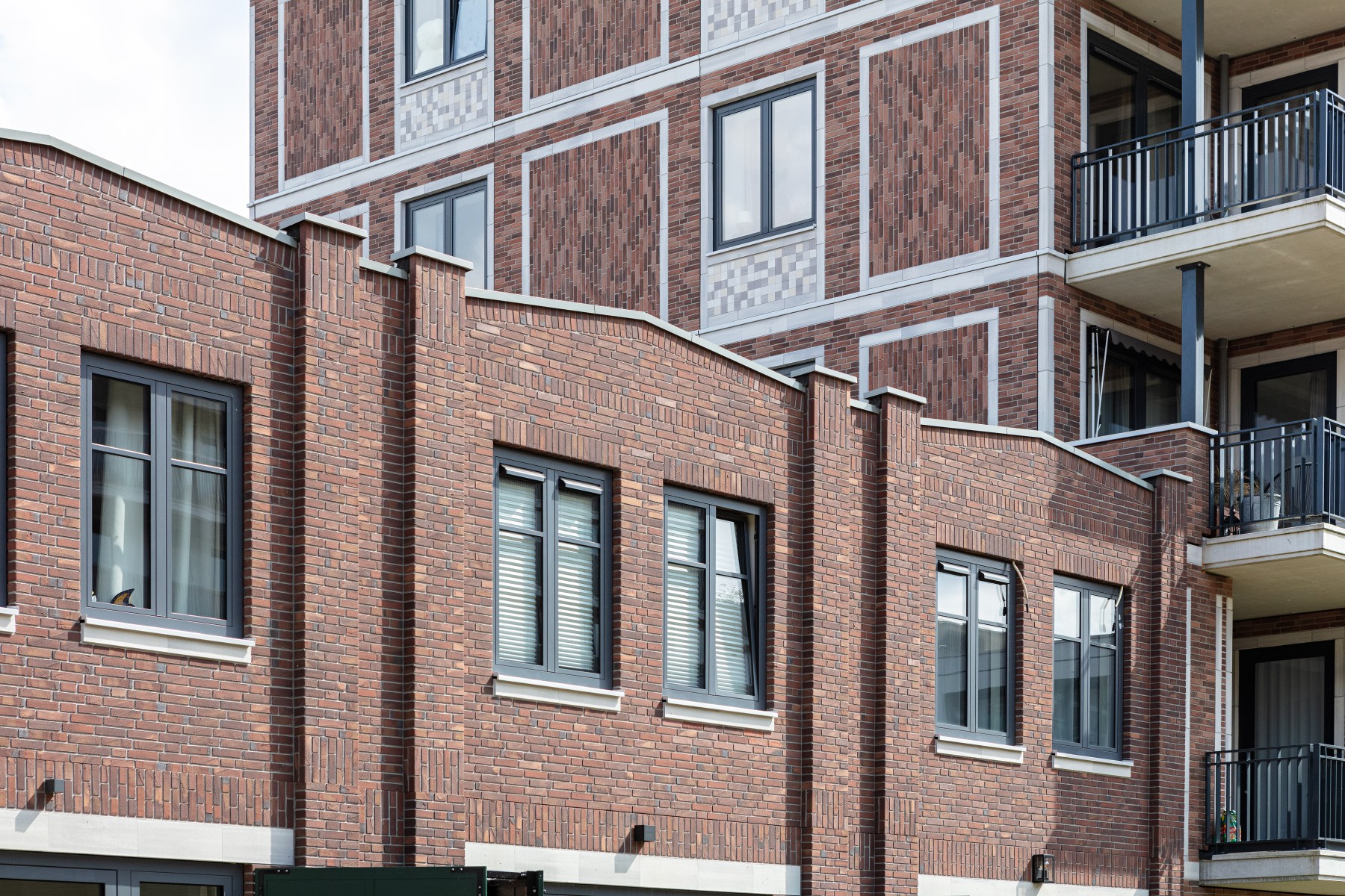 Architekt Joost Verbeek vom Büro architecten|en|en aus Eindhoven blickt mit Zufriedenheit auf das Großprojekt Oranjekade in Helmond zurück. Was einst ein mehr oder weniger vernachlässigtes Gebiet mit zugenagelten Geschäftsgebäuden war, wurde in ein lebendiges Wohnviertel mit einer klaren Identität verwandelt. Die Kombination aus moderner Architektur mit historischen Elementen verleiht der Oranjekade eine einzigartige Ausstrahlung mit besonderem Fokus auf den Prefab-Bau. Und auf die Rolle der Aluminium-Detaillierung darin, die hier und da auffallend farbenfroh ist.
