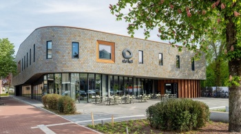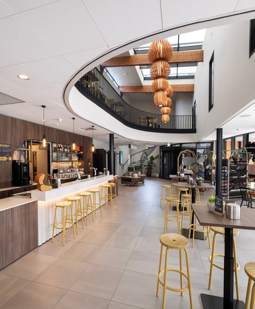 Die Geschichte der neuen Kei ist auch eine der Co-Kreation. Kein Top-Down- Design, sondern ein Prozess, bei dem die Nutzer aktiv mitgedacht haben. Die Bibliothek, der Theaterverein, der Kochclub, die Musikgruppen – alle hatten eine Stimme im Endergebnis. „Das ist vielleicht das Schönste an diesem Projekt“, erzählt Keeris. „Jeder fühlt sich als Miteigentümer. Das Gebäude gehört nicht nur der Gemeinde, es gehört Reusel.“ Dieses Gefühl wird durch das Design verstärkt, in dem die Begegnung zentral steht. Der Theatersaal ist multifunktional nutzbar, das Foyer hat einen offenen Charakter und sogar das Dach ist grün gestaltet – mit Moosen und Gräsern, die zur Biodiversität und Kühlung beitragen. „Wir haben wirklich nach Balance gesucht: robust und dauerhaft, aber auch warm und einladend.“