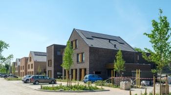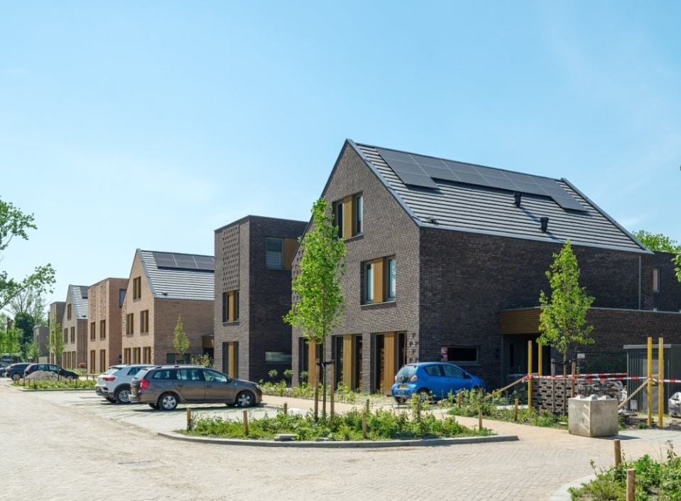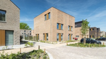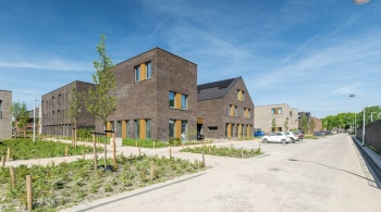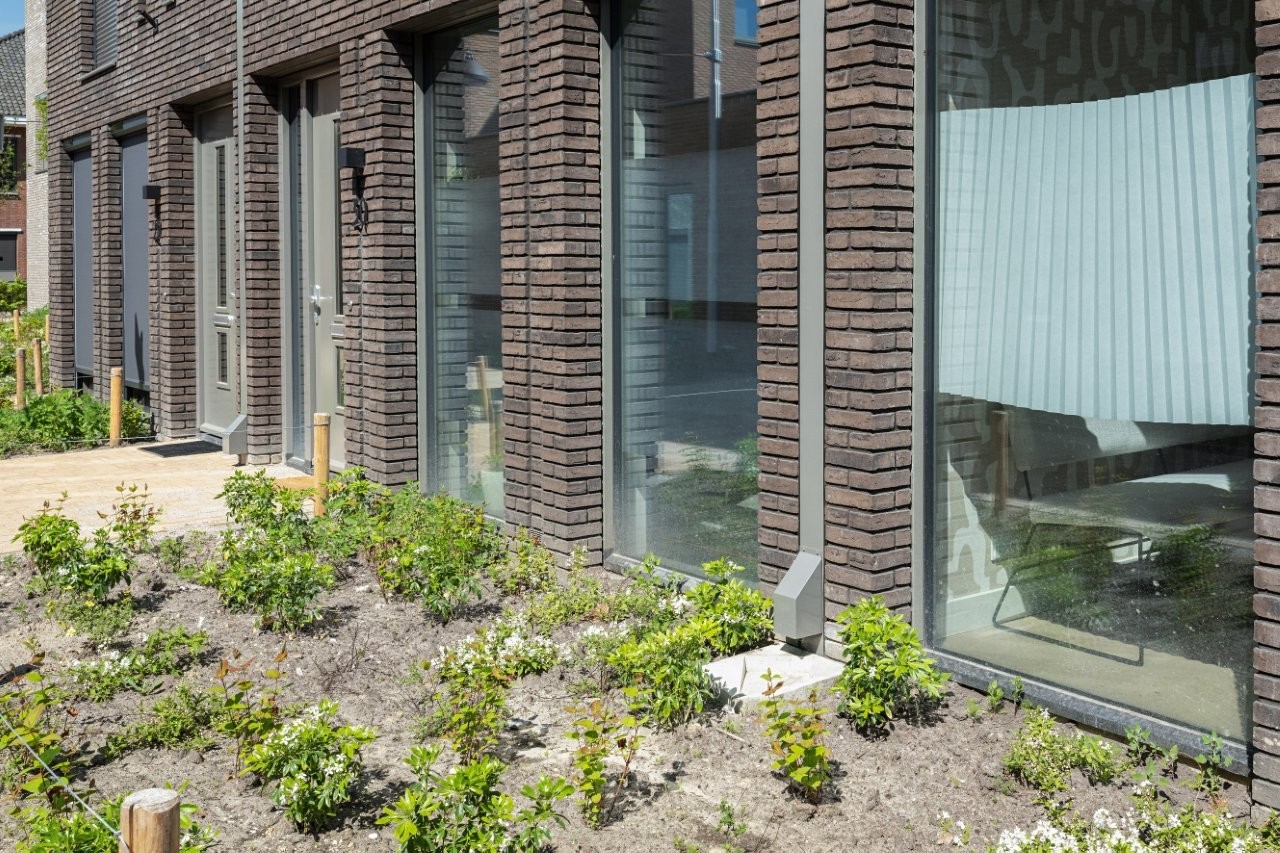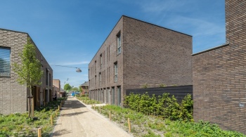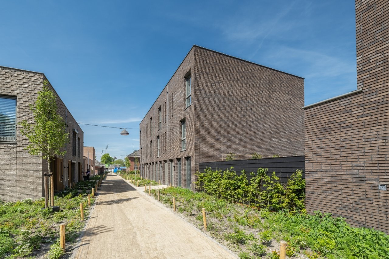 Das Viertel weist ein auffallend gemischtes Programm auf: ebenerdige Eigentumswohnungen, Apartments, soziale Mietwohnungen, eine Grundschule, eine Kindertagesstätte und Pflegeheime. „Diese Funktionsmischung war von Anfang an ein wichtiger Ausgangspunkt. Das spiegelt sich auch in den Grundrissen, der Lage der Gebäude und der Wegeführung wider“, erklärt Van der Hamsvoord. Trotz dieser funktionalen Vielfalt wirkt das Gebiet besonders ruhig. Das liegt an der cleveren Gestaltung des öffentlichen Raums. „Der zentrale Bereich ist vollständig autofrei. Das Parken erfolgt an den Rändern des Gebiets oder halb tiefergelegt unter einigen Apartment- Gebäuden. Dadurch gibt es viel Spielfläche und Raum für Erholung.“