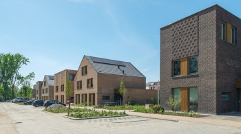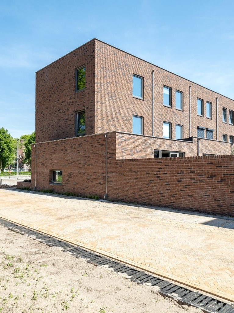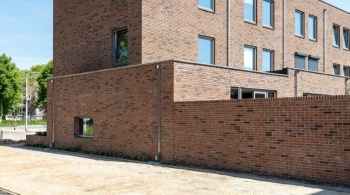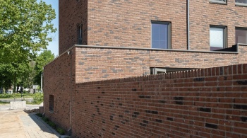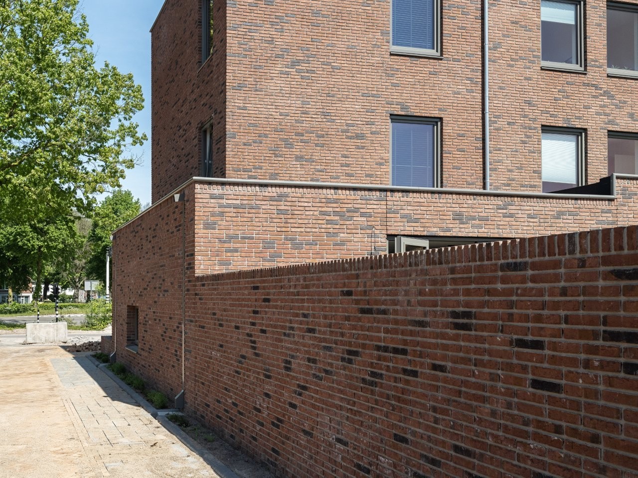 Um die gewünschte Einheit im Fassadenbild zu erreichen, arbeitete DAT mit verschiedenen Schichten im Design: Typologie, Farbe des Mauerwerks und Mauerwerksverbände. Dabei arbeitete das Tilburger Büro mit Architectuur MAKEN aus Rotterdam zusammen, die auch einige Wohnungstypen entwarf. Die Mauerwerksverbände sind nicht nur ästhetisch gedacht; sie haben eine ökologische Funktion. Walter van der Hamsvoord: „Wir haben Nist- Gelegenheiten für unter anderem Mauersegler und Fledermäuse integriert. Jeder Mauerwerksverband erhielt den Namen einer Tierart und ist auf die Größe und Position des zugehörigen Nistkastens abgestimmt.“ Dadurch entsteht ein abwechslungsreiches Straßenbild, das zusammen mit der Bepflanzung im öffentlichen Bereich als Biotop fungiert. Karres en Brands Landschaftsarchitekten sorgten dafür, dass bestehende Bäume so weit wie möglich erhalten blieben, besonders in der zentralen Zone. „Das trägt enorm zur Atmosphäre bei. Dies ist kein kahles Neubaugebiet, sondern ein Ort, an dem schon vom ersten Tag an Leben herrscht“, ergänzt Van der Hamsvoord.