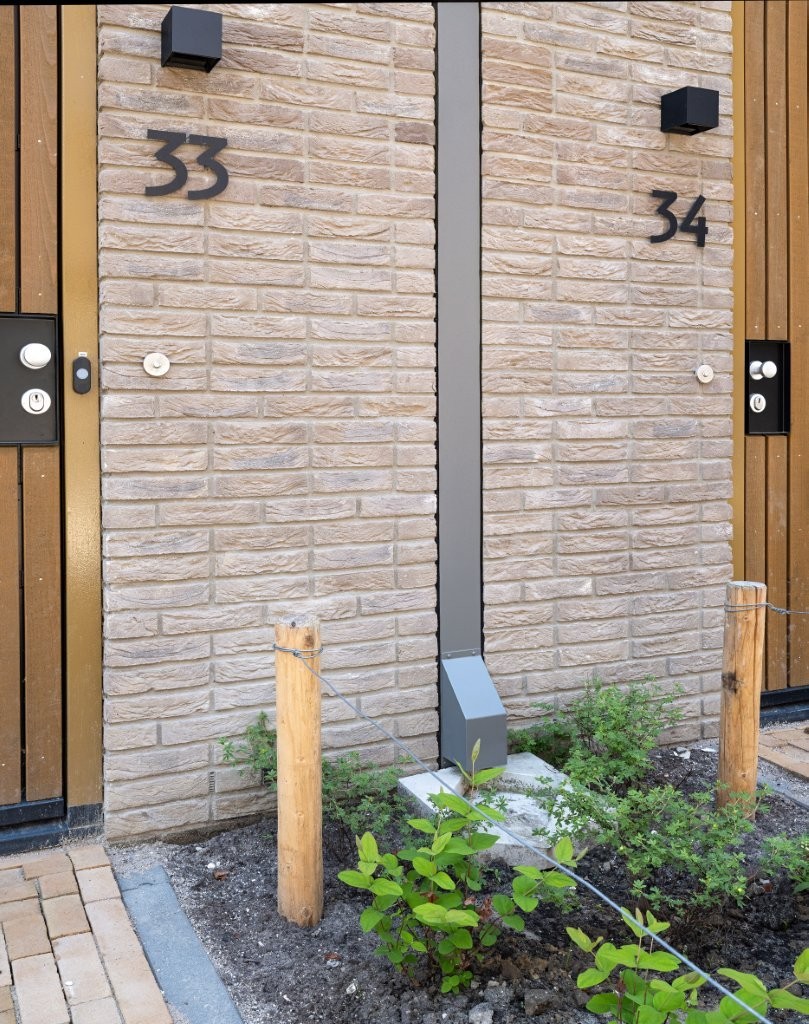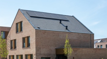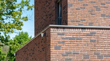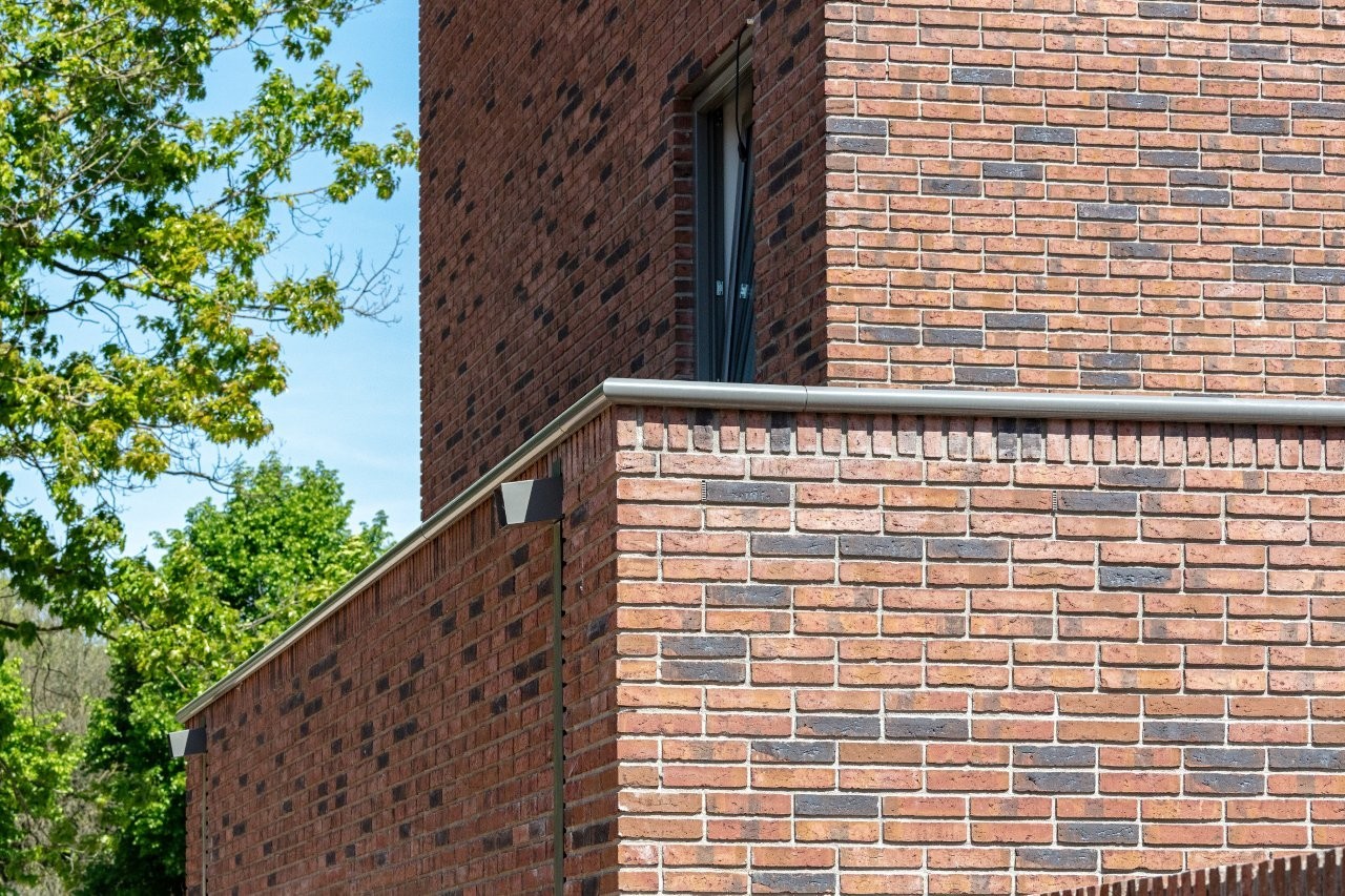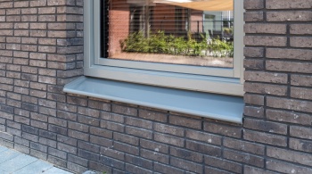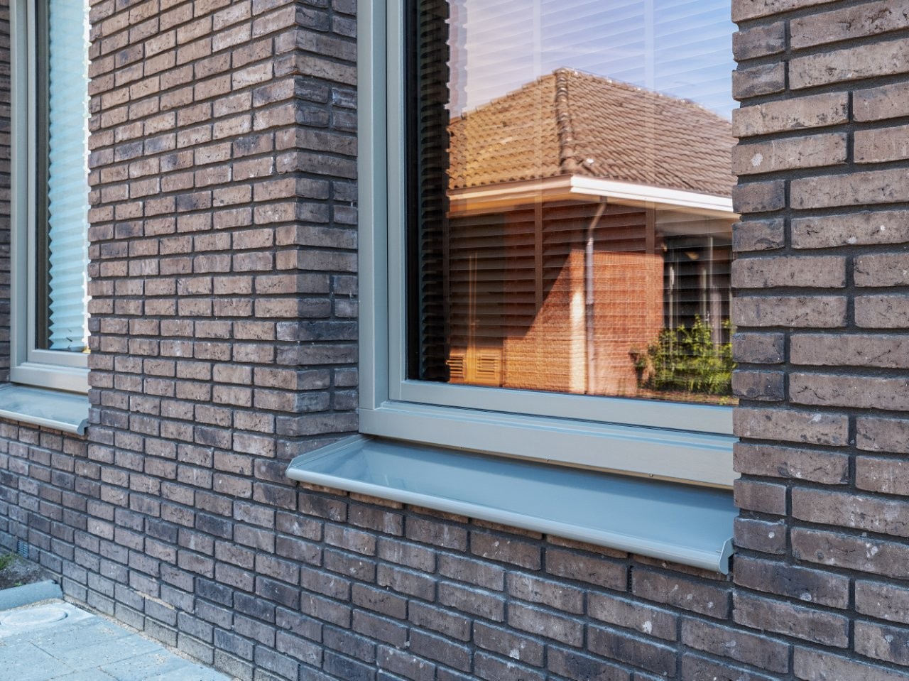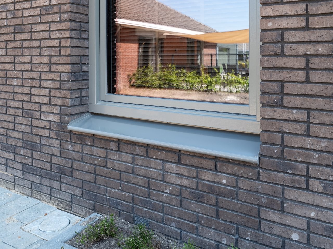 Die Wohnungen im Willemskwartier zeichnen sich durch eine zurückhaltende Architektur aus. Mauerwerk ist das dominante Material, in das Holz- Fensterrahmen in einer warmen, ruhigen Farbe eingebettet sind. „Diese Fensterrahmenfarbe – Quarzgrau – spiegelt sich in den Aluminium-Wasserschlägen, Dachrändern, Mauerabdeckungen und Regenwasser- Abflussverkleidungen wider. So entsteht Ruhe und Rhythmus. Trotz Abwechslung in der Fassadenfarbe ist die Farbe Quarzgrau überall konsequent durchgezogen. Dabei spielt Aluminium eine wichtige Rolle. Wir wollten schlanke, abstrakte Detaillierungen, die zur zurückhaltenden Ausstrahlung passen. Aluminium ist dann eine logische Wahl. Es ist langlebig, wartungsarm und lässt sich sauber verarbeiten. Wir haben uns unter anderem für Aluminium-Detaillierungen entschieden, die subtil in die Fassadenfläche integriert sind.“ Auffälliges Detail: Bei den Schrägdächern wurde in vorkommenden Fällen Aluminium-Dachränder mit einem runden Wulst gewählt. „So fließen die Dachlinien von Schräg- und Flachdächern schön ineinander über. Das verleiht dem Ganzen eine gewisse organische Struktur und Wiedererkennbarkeit, ohne aufdringlich zu sein.“